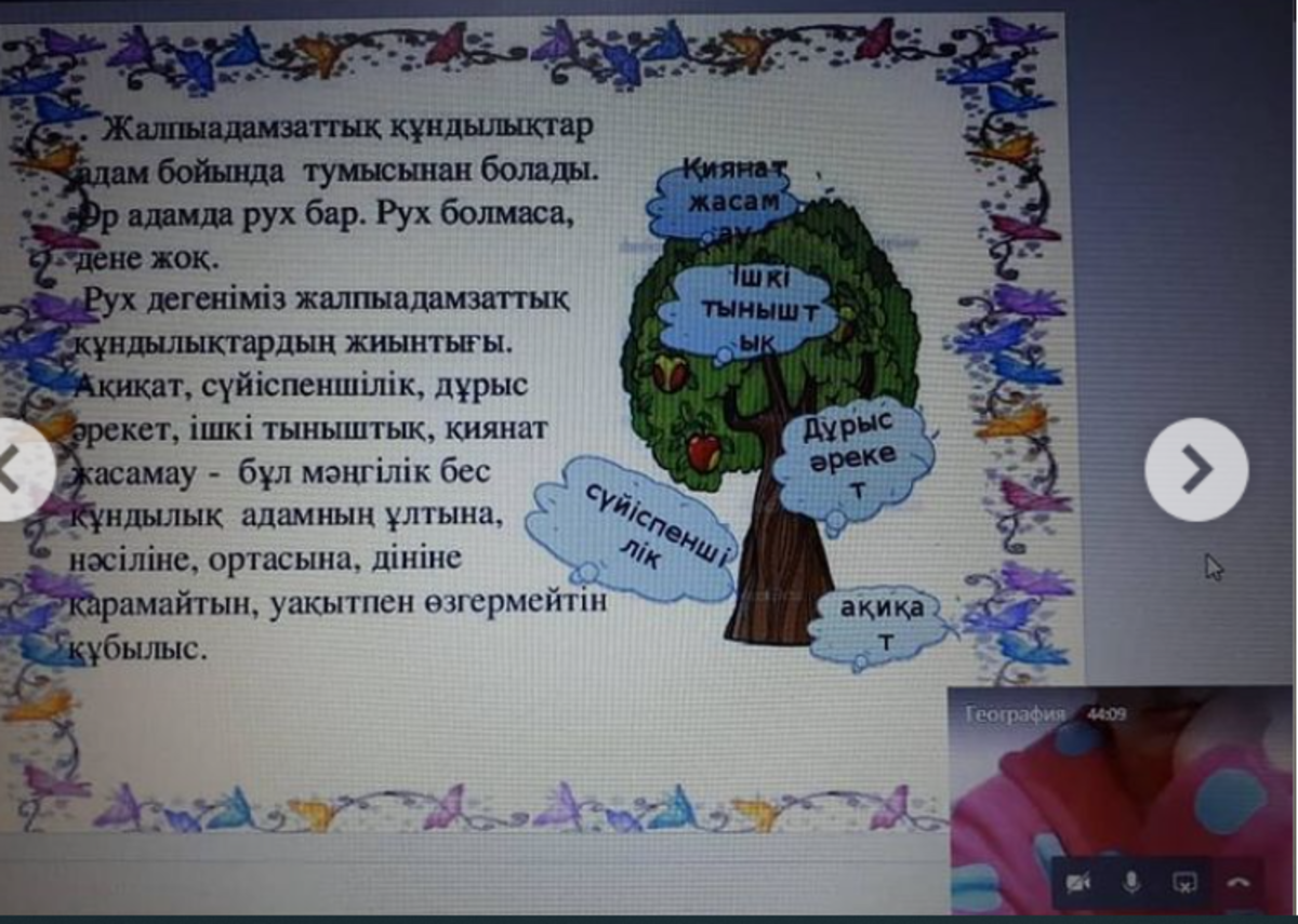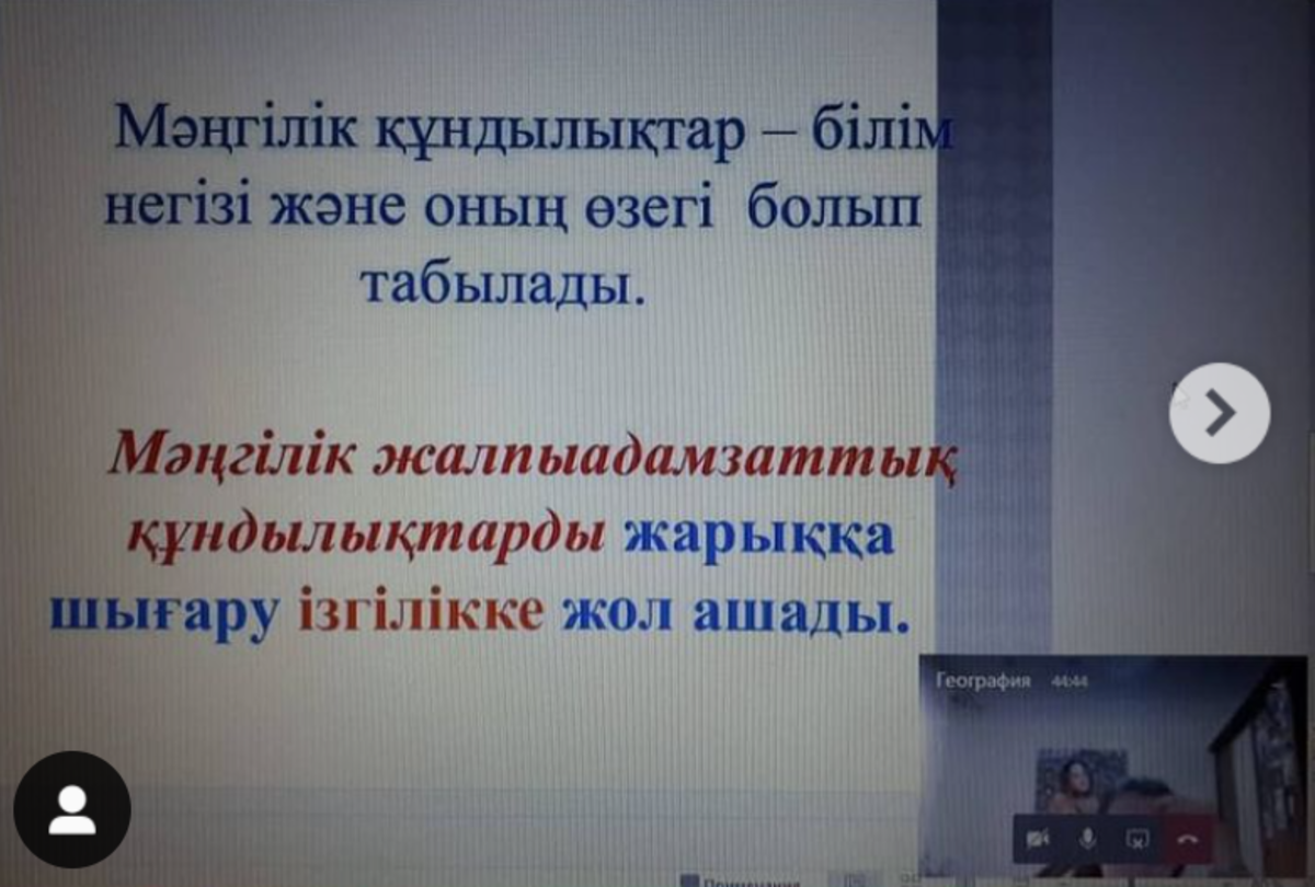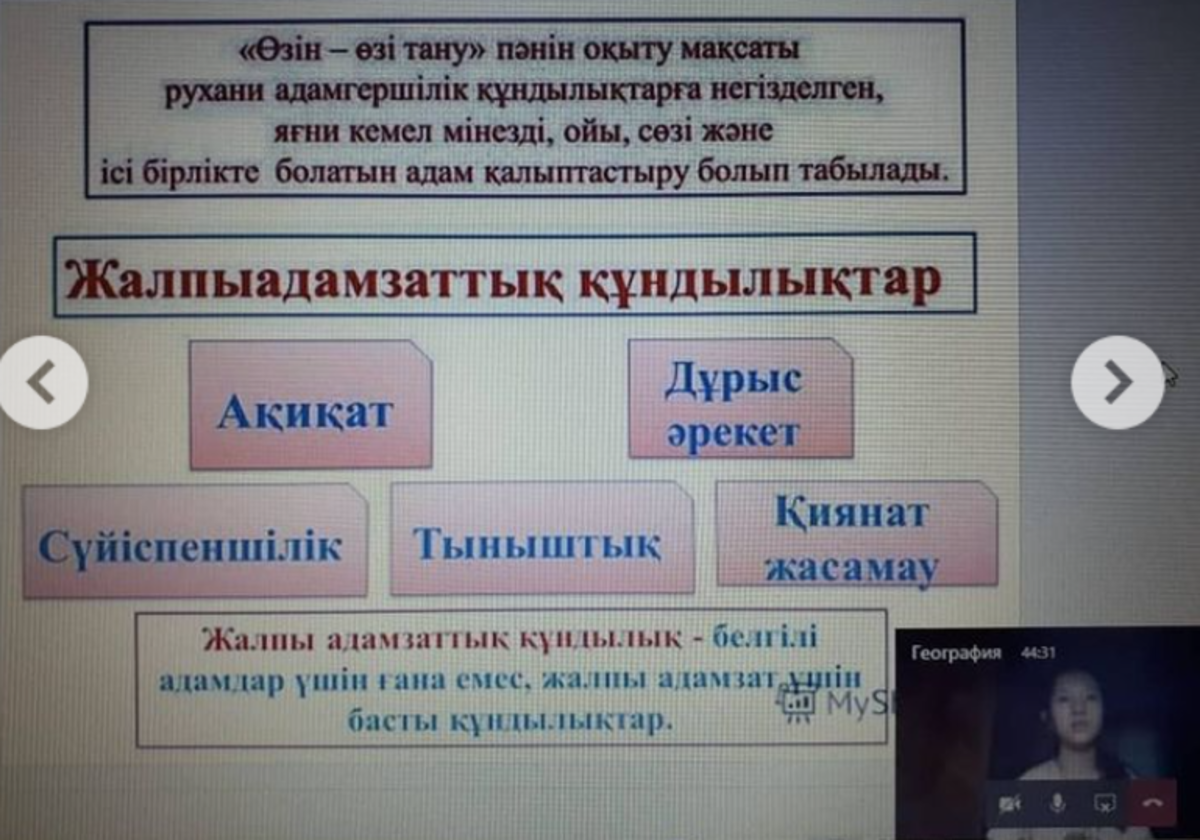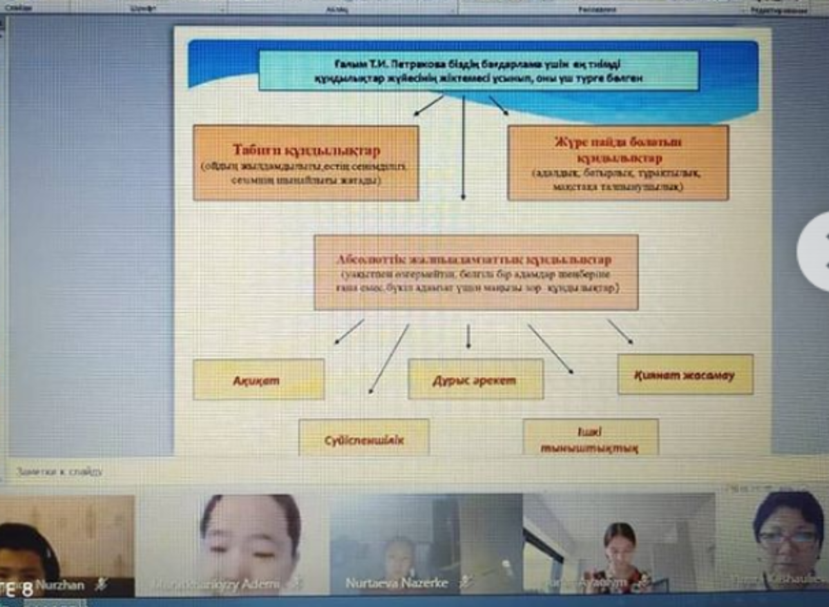 «Жалпыадамзаттық құндылықтар – бақытты өмір негізі» тақырыбында онлайн ашық тәрбие сағаты өтті