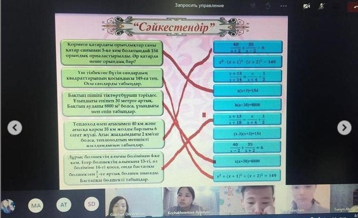 Жетісу ауданы #148 мектеп- гимназияда 18.01 - 28.01 аралығында мектептің оқу жоспарына сәйкес "Математика ғылымдар патшасы, информатика ақпараттар ғылымы" тақырыбында математика және информатика кафедрасының онкүндігі өтіліп жатыр. Онкүндік аясында математика пәнінің мұғалімі Дорветхан Гүлжан 8Б сыныбымен "Мәтінді есептерді квадрат теңдеудің көмегімен шығару" тақырыбында ашық сабағын өтті.