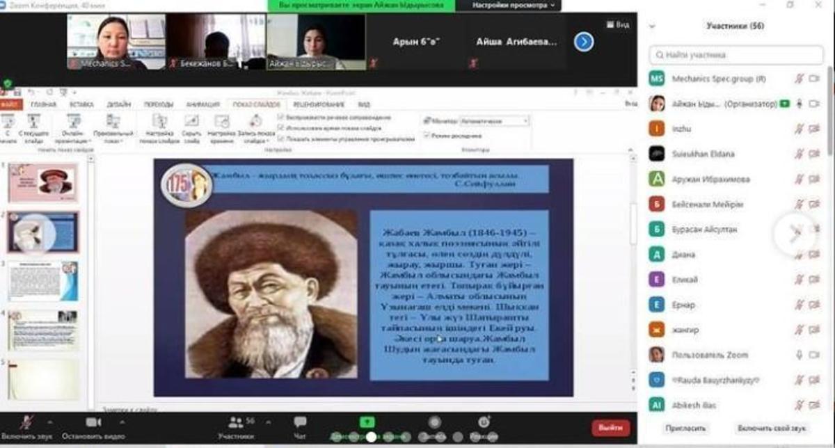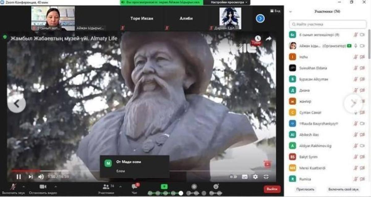 "Жамбыл—жырдың толассыз бұлағы" тақырыбында Жамбыл музейіне онлайн саяхат жасалды