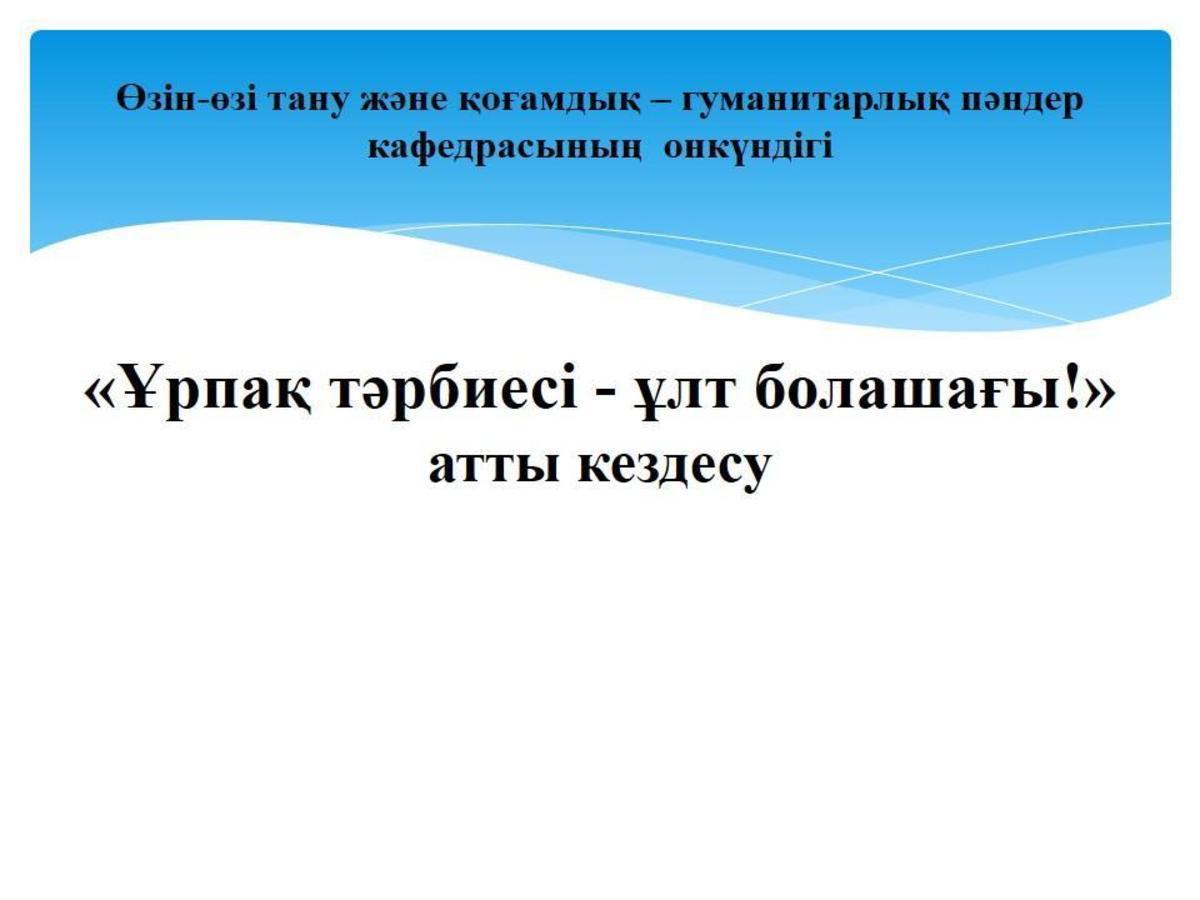 12 ақпан 2021 0 1 2 3 4 5 Өзін-өзі тану және қоғамдық – гуманитарлық пәндер кафедрасының онкүндігі Өзін-өзі тану және қоғамдық – гуманитарлық пәндер кафедрасының онкүндігіӨтілу мерзімі:01.02.-10.02.2021жылТақырыбы:«Рухани жаңғыру-ұлттық рухты көтеру тұғыры»«Өзін-өзі тану: Махаббат пен Шығармашылық педагогикасы» Осы беттің QR-коды:QR-код этой страницы: