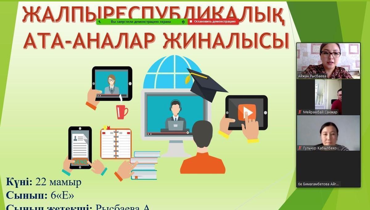№148 гимназияда Білім бөлімінің жоспарына сәйкес 2020-2021 оқу жылының аяқталуын ұйымдастыру мақсатында Жалпыреспубликалық ата-аналар жиналысын өткізу тапсырмасына сәйкес ата-аналар жиналысы өтті.