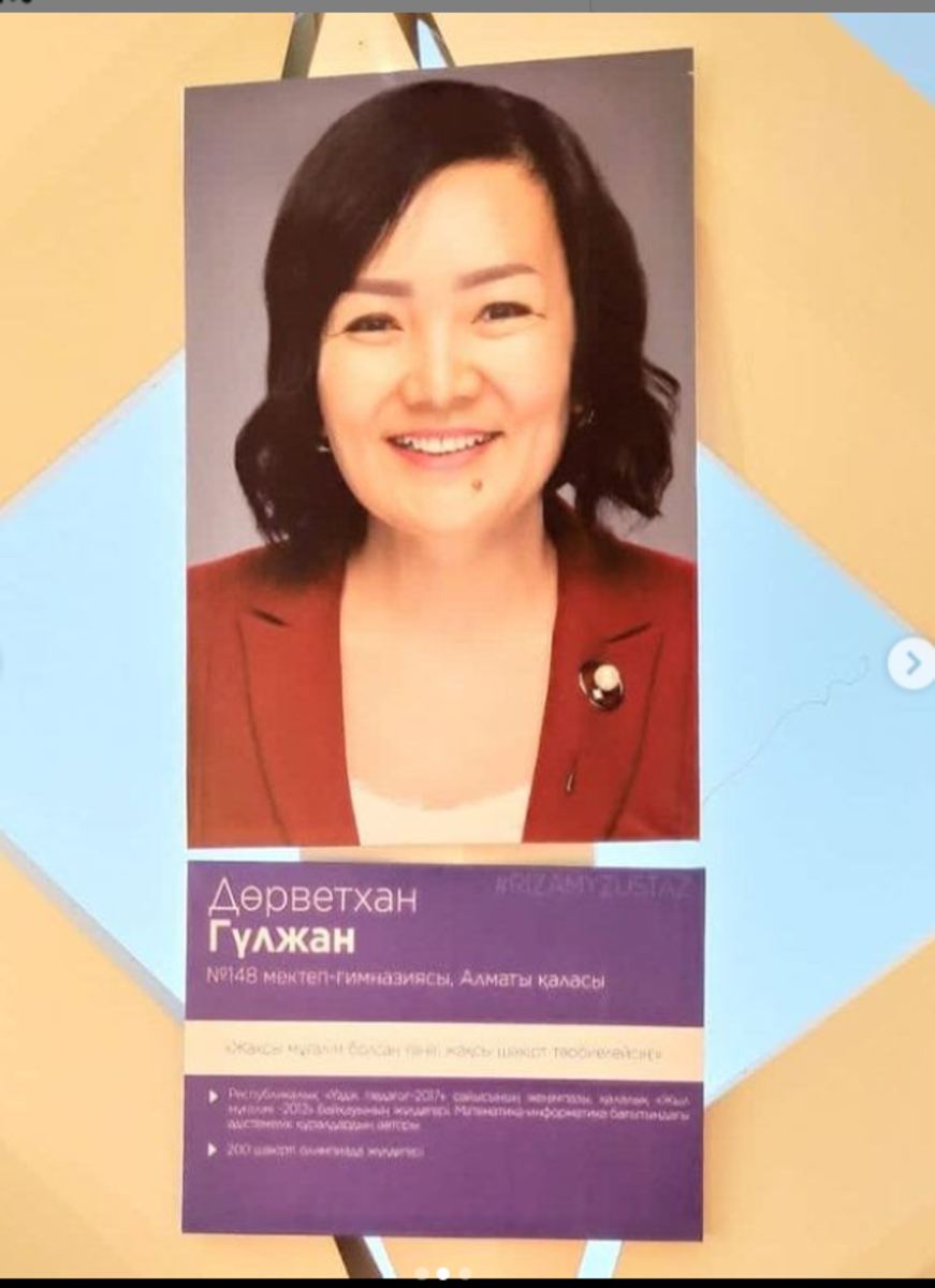 Жетісу ауданы №148 мектеп-гимназияның бастауыш сынып мұғалімі МЕРГЕНБАЕВА НАЗИГҮЛ ОРАЗБАЙҚЫЗЫ мен математика пәнінің мұғалімі ДОРВЕТХАН ГҮЛЖАННЫҢ суреттері Республиканың 100 ұстазының көрмесінен орын алған. Біздің мектептің екі ұстазы да Республикалық ҮЗДІК ПЕДАГОГ конкурсының жеңімпаздары. Әріптестерімізбен мақтанамыз!