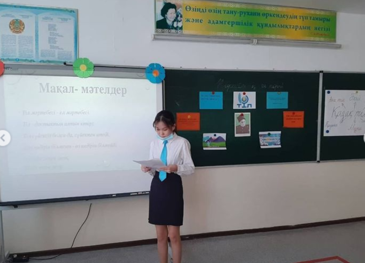 №148 мектеп-гимназияда Жетісу ауданы Білім бөлімі тапсырмасы, мектептің оқу-тәрбие жоспарына сәйкес "Тәуелсіздік – мемлекеттік тіл тірегі" тақырыбында ҚР Тілдер күніне арналған сабақтар өтілді