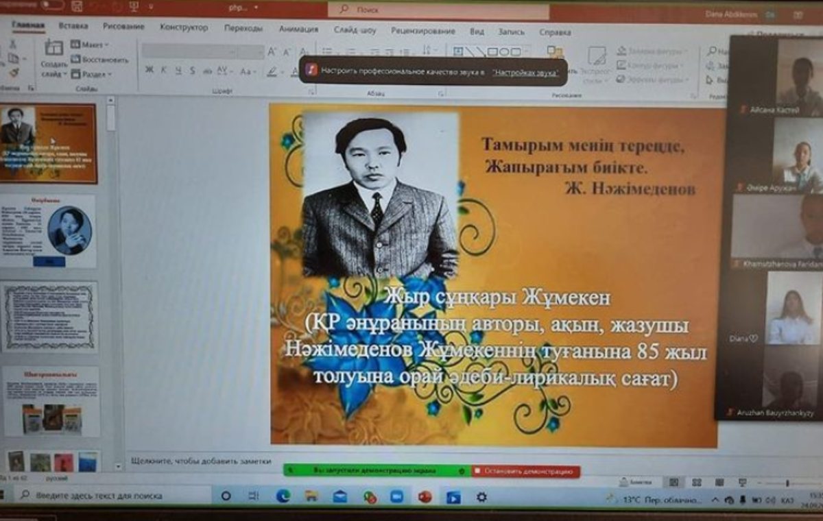 “Жыр сұңқары Жұмекен” Қазақстан Республикасының Гимн авторы, ақын, жазушы Нәжімеденов Жұмакеннің туғанына 85 жыл толуына орай әдеби-лирикалық сағат өтті