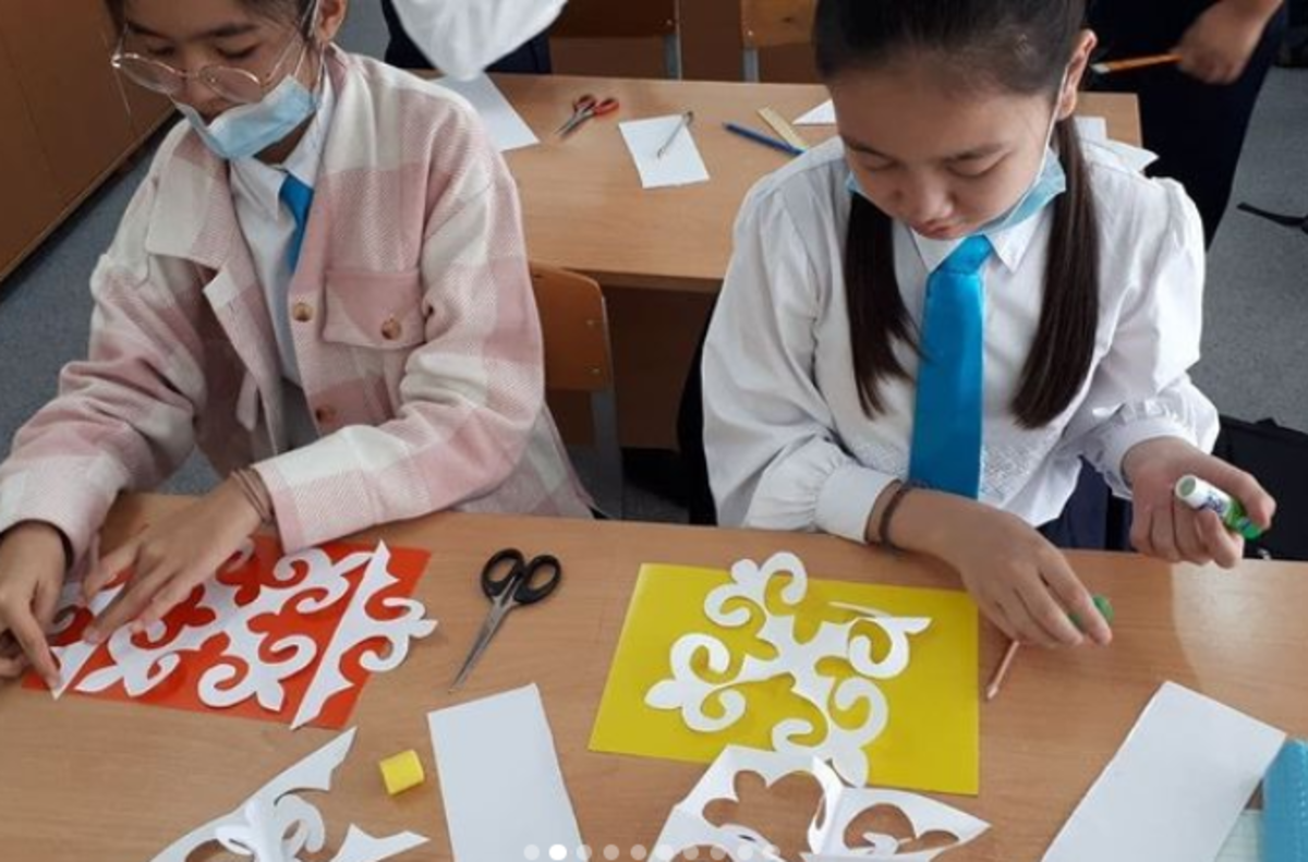 Жетісу ауданы №148 мектеп-гимназия оқушылары “Ұлы дала өркениеттері” атты байқауға қатысуда. Байқау аясында 7В сыныбына «Талант-табиғаттан, талап-өзіңнен» тақырыбында танымдық кездесу сабақ өткізілді. Кездесуге Көркем еңбек пәні мұғалімі Исмаилова Санимгуль Исраиловна қатысты. Кездесу барысында Сәнімгүл Исраиловна қазақ халқындағы ою өнері туралы айта келе, балаларға ою ойғызып үйретті. Балалар қызығушылықпен, белсенділікпен қатысты.