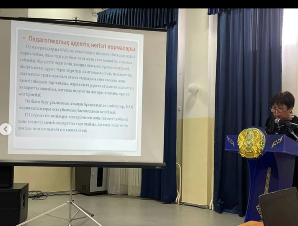 3. Педагогикалық әдеп қағидалалары. "Әдеп кеңесінің" төрайымы А.Қ. Шойбек