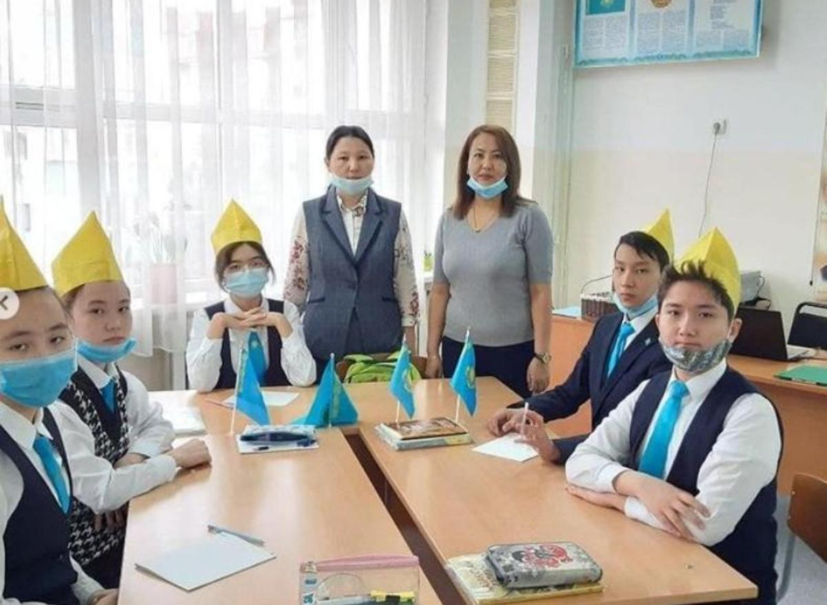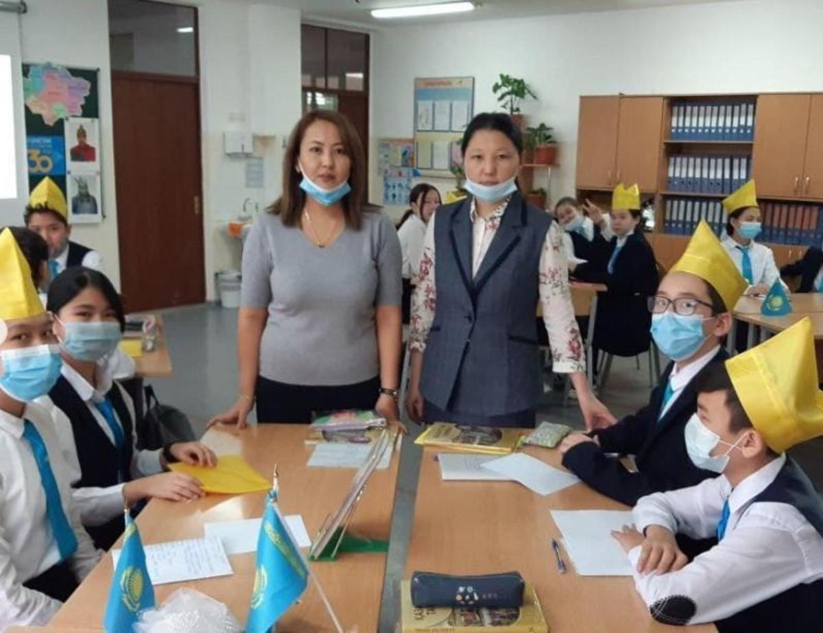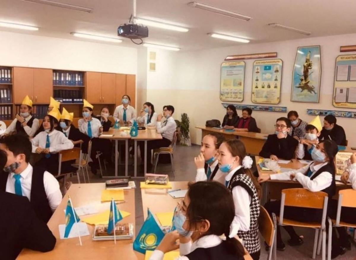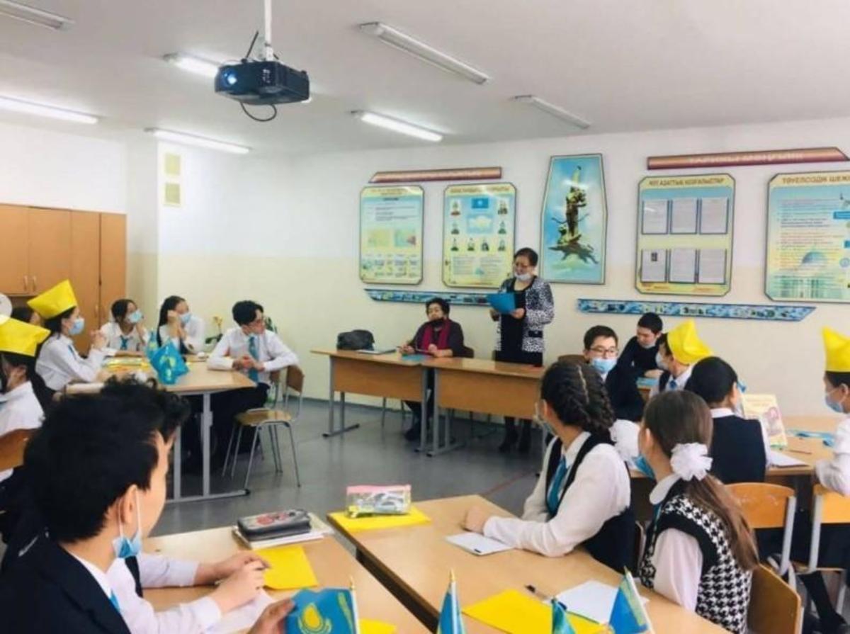 Жетісу ауданы №148 мектеп-гимназияда Қазақстан Республикасы Тәуелсіздігінің 30 жылдығына арналған мектептің оқу жоспарына сәйкес "Тіл мен тарих-халықтың қос қанаты" тақырыбында қоғамдық-гуманитарлық пәндер кафедрасының онкүндігі аясында Мырзабекова Сұлушаш, Рустемова Мадина 7Ә, 7В, 7Ғ, 7Д сыныптарымен "Білімді мыңды жығар" тақырыбында интеллектуалды сайыс өткізді.