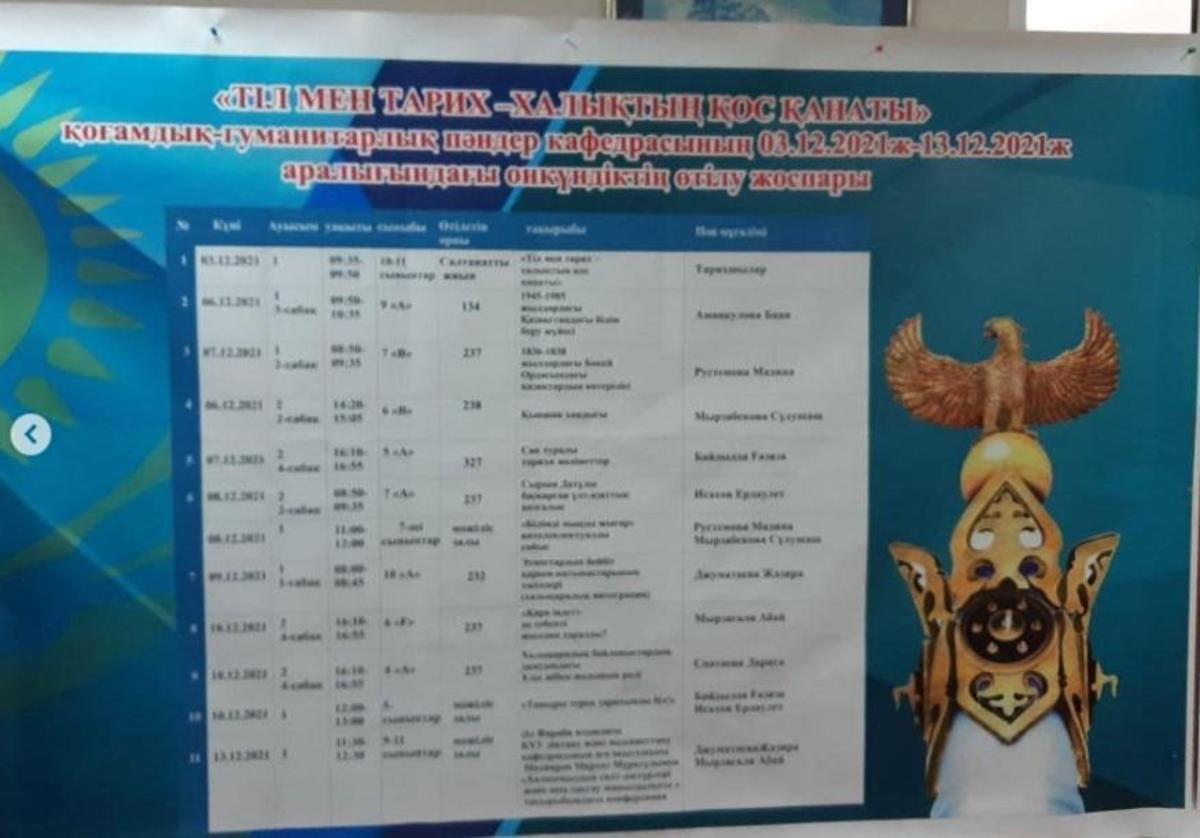 Жетісу ауданы №148 мектеп-гимназияда Қазақстан Республикасы Тәуелсіздігінің 30 жылдығына арналған мектептің оқу жоспарына сәйкес " Тіл мен тарих-халықтың қос қанаты" тақырыбында қоғамдық-гуманитарлық пәндер кафедрасы онкүндігінің ашылу салтанаты өтілді.