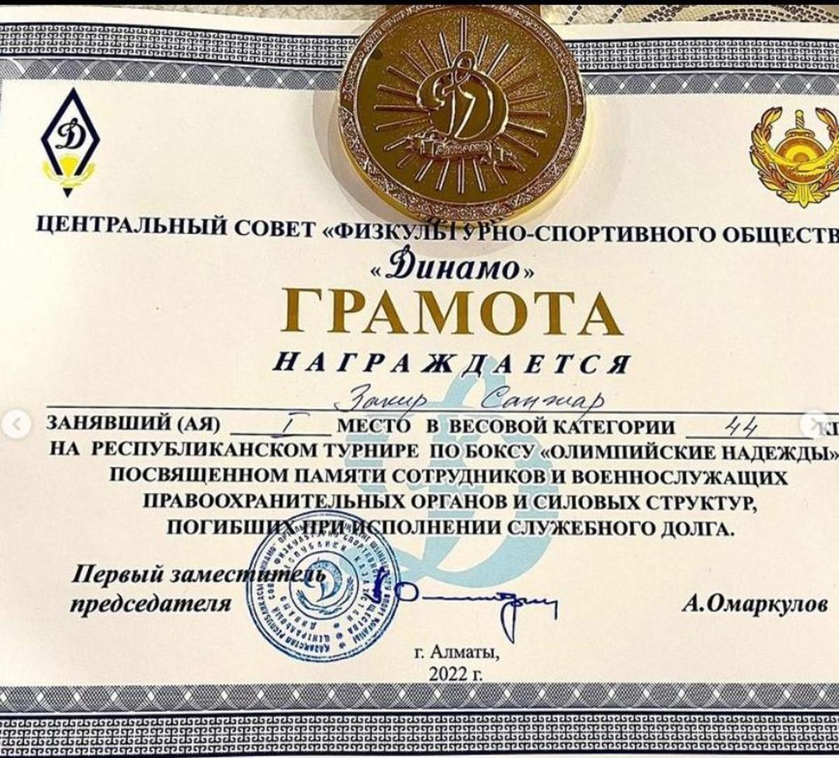 Жетісу ауданы №148 мектеп-гимназияның 8”В” сынып оқушысы Закир Санжар Республикалық бокс турнирінен І ОРЫН иеленді.
