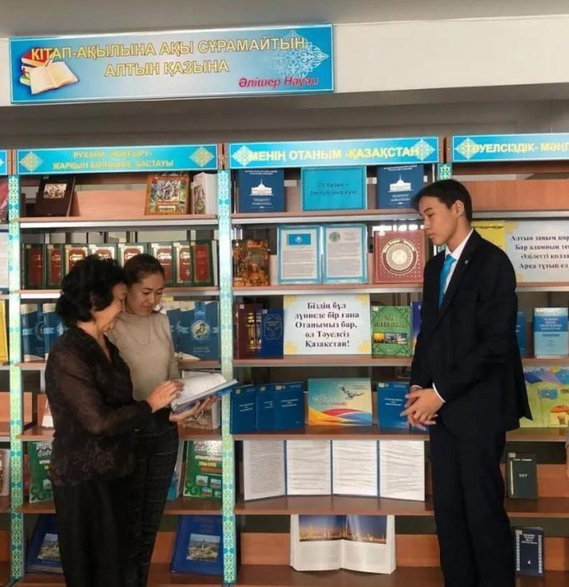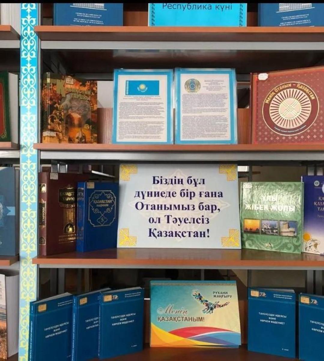 Жетісу ауданы №148 мектеп-гимназияның тәрбие жоспарына сәйкес Республика күніне "Менің Отаным Қазақстан" тақырыбында кітап көрмесі өткізілді.