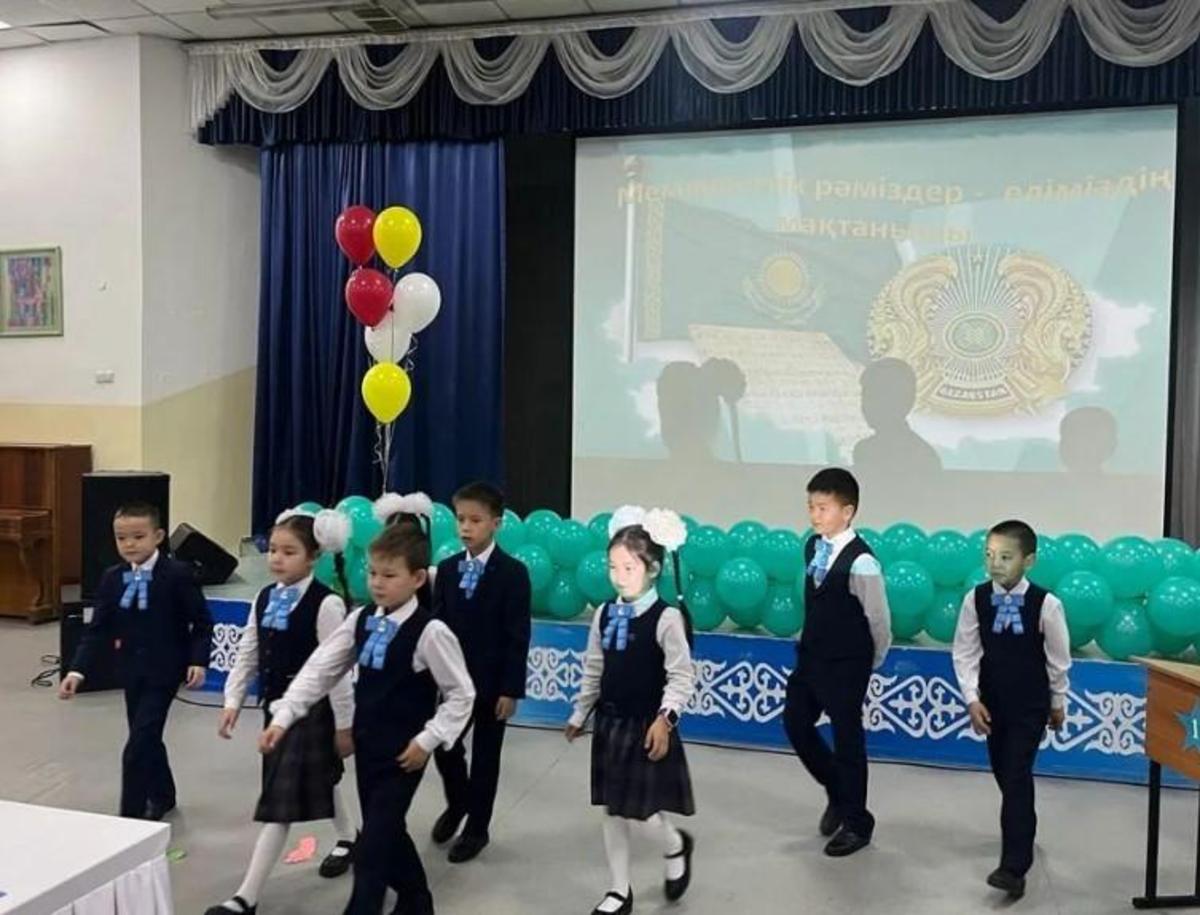Жетісу ауданы №148 мектеп -гимназияда бастауыш сыныптар онкүндігі аясында, Қазақстанның Мемлекеттік рәміздерінің 30 жылдығына орай 2- сыныптар арасында ұйымдастырылған "Мемлекеттік рәміздер-ұлттық мақтанышымыз" атты сайыс өткізілді