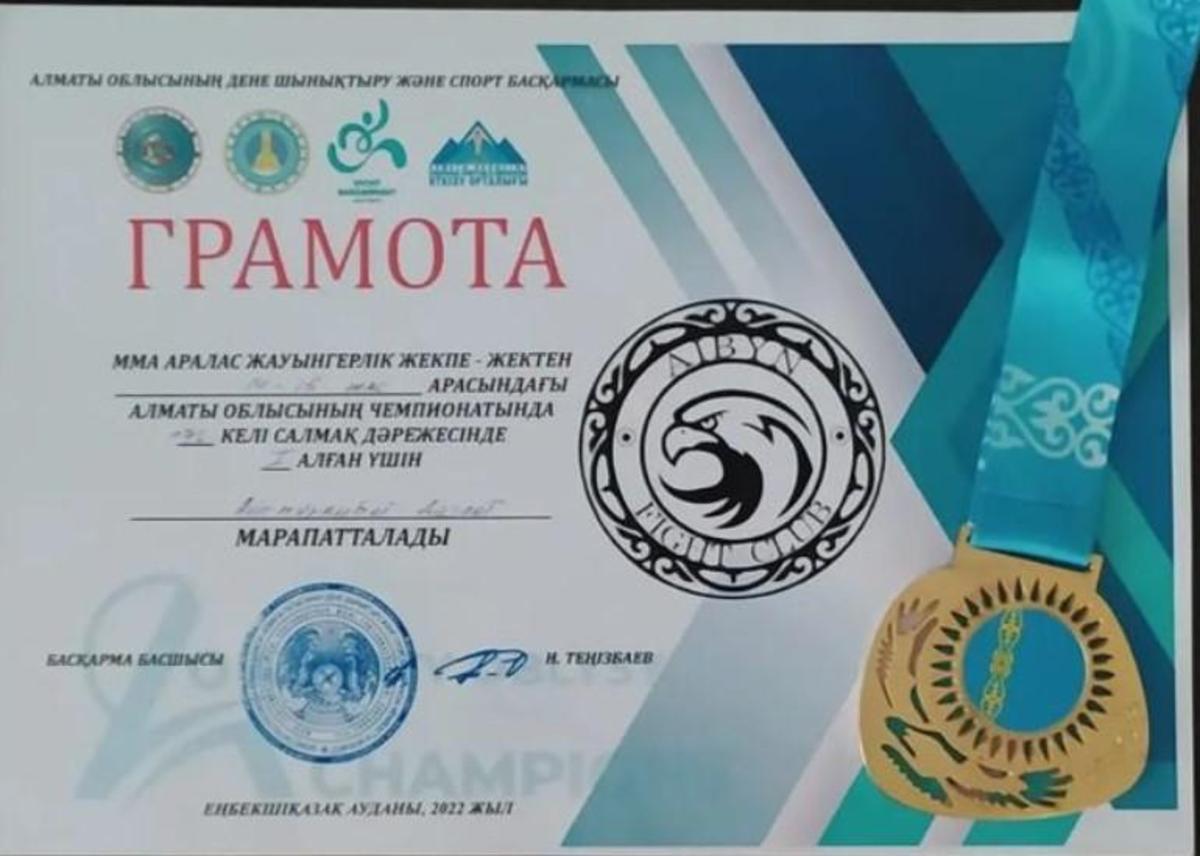 Жетісу ауданы №148 мектеп-гимназияның 9 "Б" сынып оқушысы Айтмұхамет Дәулет ММА аралас жауынгерлік жекпе-жектен 14-15 жас арасындағы Алматы облысының Чемпионатында 72 кг. салмақ дәрежесінде I орын алғаны үшін марапатталды.