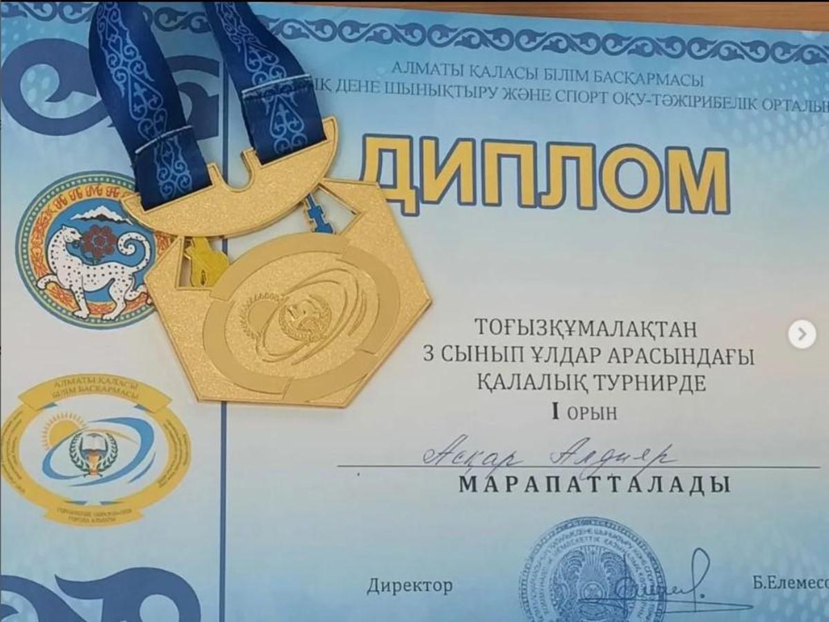 Жетісу ауданы №148 мектеп-гимназияның 3-сынып оқушысы Асқар Алдияр тоғызқұмалақтан ұлдар арасындағы қалалық турнирден I орын алғаны үшін дипломмен марапатталды.
