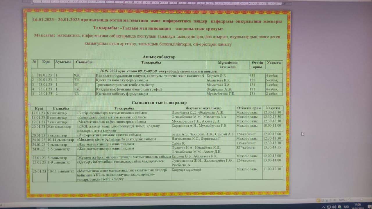 №148 мектеп-гимназияда 16.01-26.01.2023ж. аралығында мектептің оқу жоспарына сәйкес математика және информатика пәндер кафедрасының "Ғылым мен инновация - жаңашылдық арқауы" атты онкүндіктің ашылу салтанаты өтті.