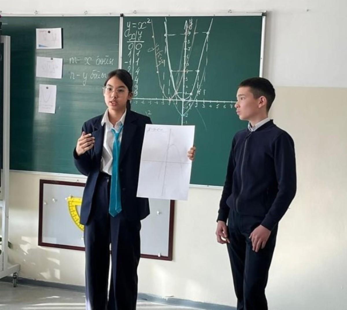 Жетісу ауданы №148 мектеп-гимназиясында “Ғылым мен инновация - жаңашылдық арқауы” атты математика және информатика пәндері кафедрасының онкүндігі аясында математика пәні мұғалімі Әбдіраман Айзат 8”Ж” сынып оқушыларымен “Lesson study” аясында “Квадраттық функция және оның графигі” тақырыбында алгебра пәнінен ашық сабақ өткізді.