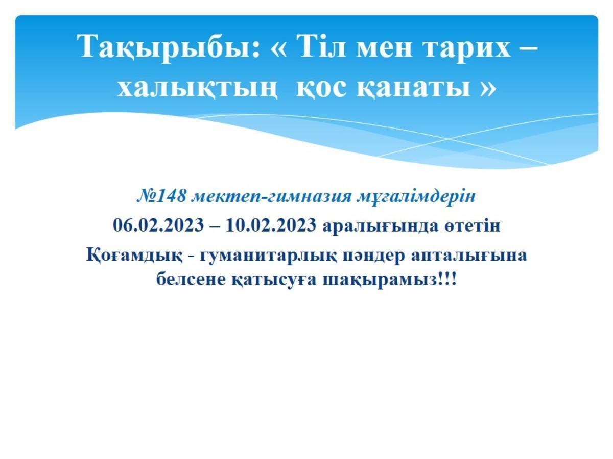 06 ақпан 2023 0 1 2 3 4 5 №148 мектеп-гимназияда 06.02.2023 – 10.02.2023 аралығында өтілген қоғамдық - гуманитарлық пәндер апталығы Осы беттің QR-коды:QR-код этой страницы: