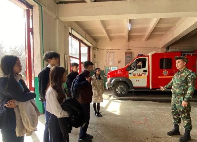 Жетісу ауданы №148 мектеп-гимназияда «Бүкіләлемдік Азаматтық қорғаныс күніне» орай 8-9 сынып оқушыларын Жетісу аудандық №12 өрт сөндіру бөліміне барып, экскурсия барысында өрт сөндірушілер мен құтқарушылардың кәсіби жұмыстары туралы қызықты әңігемелерге қанық болды. Қысқа мерзім ішінде биік қабатты ғимараттарға шығу, тілсіз жаумен алысу айла-тәсілдері, өрт сөндіру және құтқару техникалары мен құрал-жабдықтары, үйінділер астындағы зардап шегушіні алып шығу, күрделі орындарға кіру тәсілдері оқушыларды тәнті етті. Барлық құтқару техникаларын тамашалаған балалар, өз кезегінде түрлі сипаттағы құтқару жабдықтары мен қорғау дулығаларын қызығушылықпен киіп көрді.