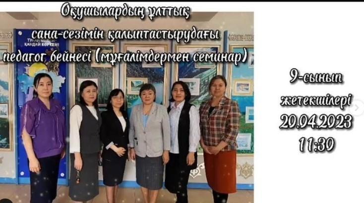 Жетісу ауданы №148 мектеп-гимназияның оқу-тәрбие жұмыс жоспарына "Ұрпақ тәрбиесі - құндылық негізі " тақырыбында өтіп жатқан сынып жетекшілер онкүндігі аясында 9-сынып жетекшілері "Оқушылардың ұлттық сана-сезімін қалыптастырудағы педагог бейнесі " атты мұғалімдермен тренинг өткізді