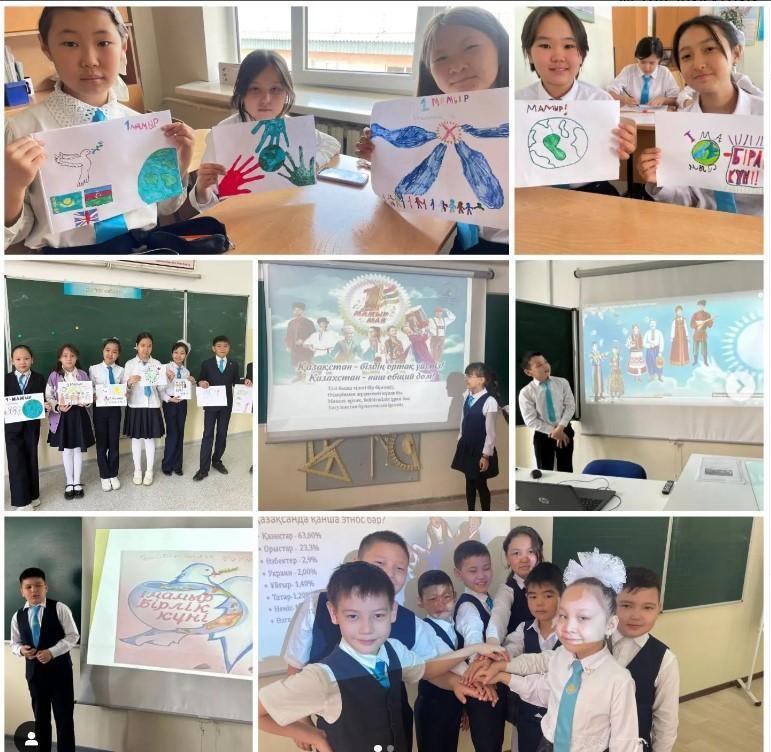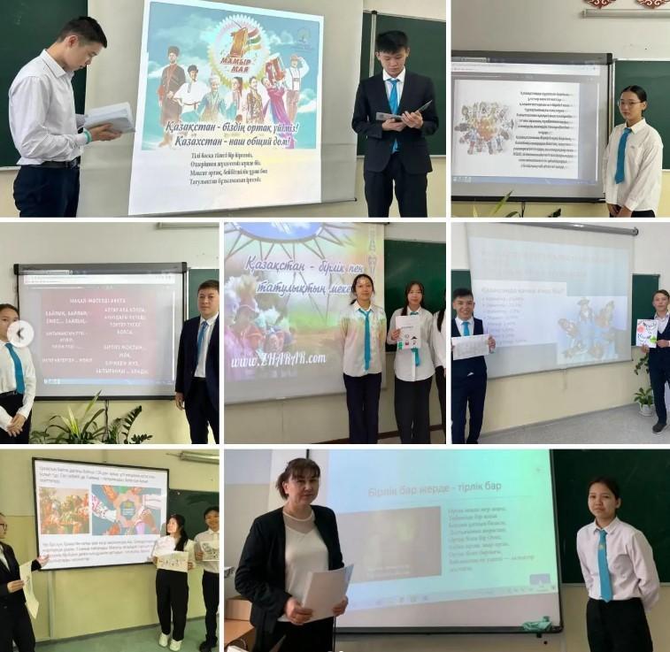 Жетісу ауданы №148 мектеп-гимназияда 1 мамыр Қазақстан халықтар бірлігі күніне арналған " Бірлік-бақыттық бастауы" тақырыбында 1-11 сынып оқушыларына тәрбие сағатын өтті