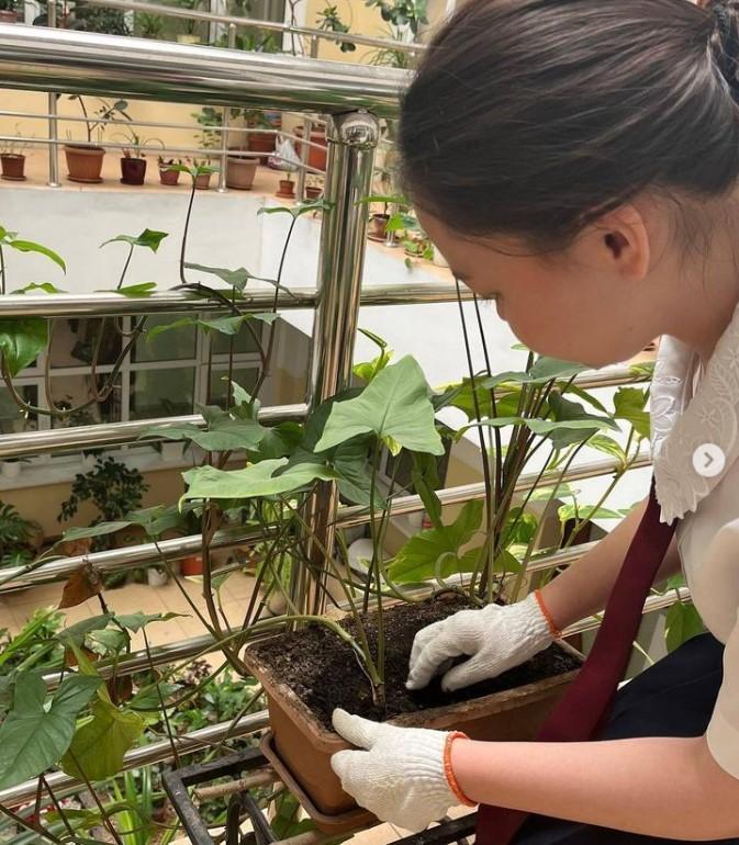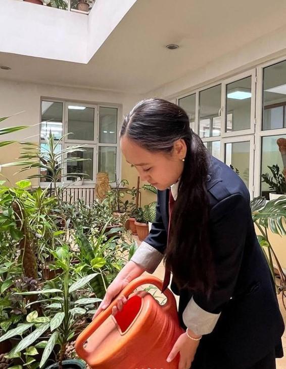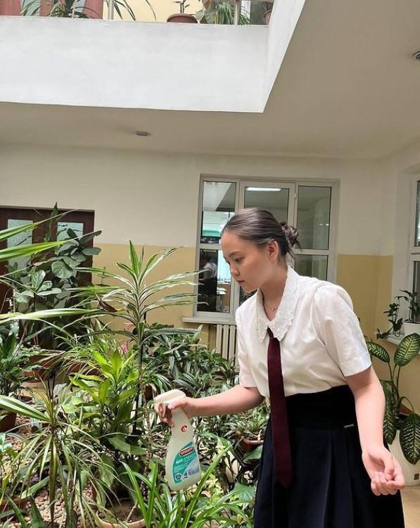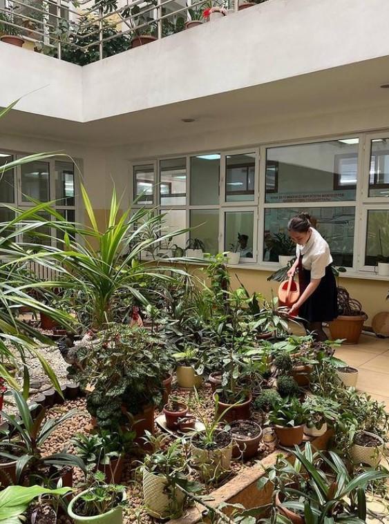 Жетісу ауданы №148 мектеп-гимназияда "ТӨРТ ТОҚСАН-ТӨРТ ӨНЕР" жобасы аясында “Өзін өзі басқару” ұйымының қыздары мектепте орналасқан қысқы бағымыздағы гүлдерді суғарып, күтім жасады