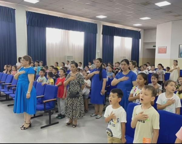 Жетісу ауданы №148 мектеп-гимназияның жанынан ашылған "Балдәурен" жазғы сауықтыру лагерінің оқушылары