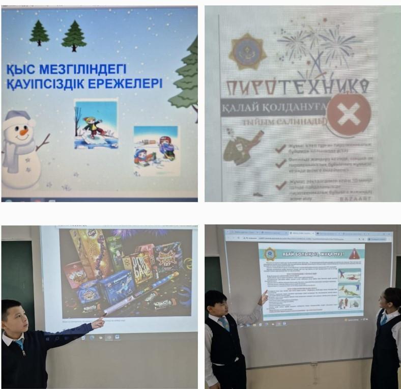 №148 мектеп-гимназиясында 1-11 сыныптар арасында жаңа жыл қарсаңында “Қауіпсіз жаңа жыл”, “Пиротехникалық заттарды дұрыс пайдалана білу”, “Өрт және өрттен сақтану” тақырыптарында сынып сағаттары ұйымдастырылды.