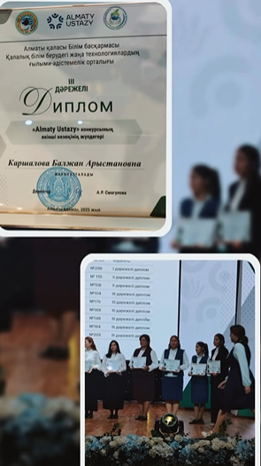 Бастауыш сынып мұғалімі Каршалова Балжан байқаудың екінші кезеңінде жүлделі III орынға ие болды. Бұл – ұстаздың қажырлы еңбегі мен шәкірттерге деген шынайы сүйіспеншілігінің айқын жемісі.