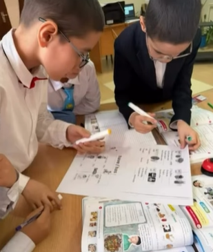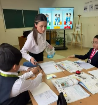 Оқушылардың жас ерекшеліктеріне сәйкес тапсырмалар беріліп, бағалау жүргізілді. Сабақ барысында білім алушылардың белсенділігі мен тілдік дағдылары арттырылды.