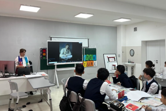 Ағылшын тілі пәнінің мұғалімі Курманбаева Динара 8 «Ә» сыныбымен Language and Literature. The Time Machine тақырыбында ашық сабақ өткізді.
