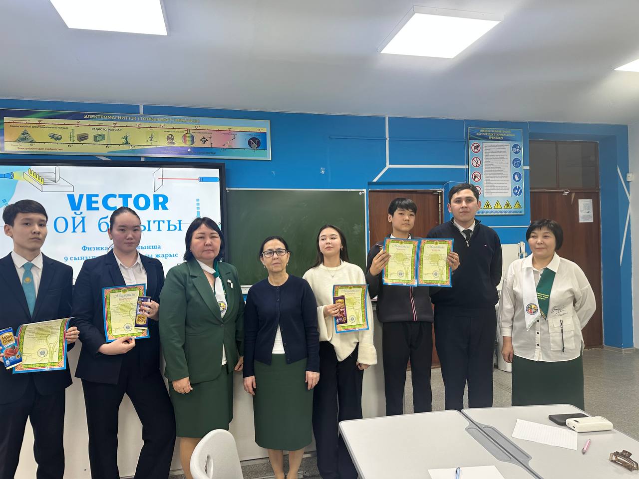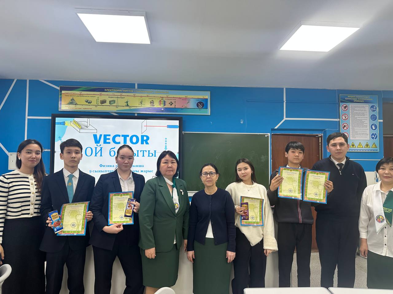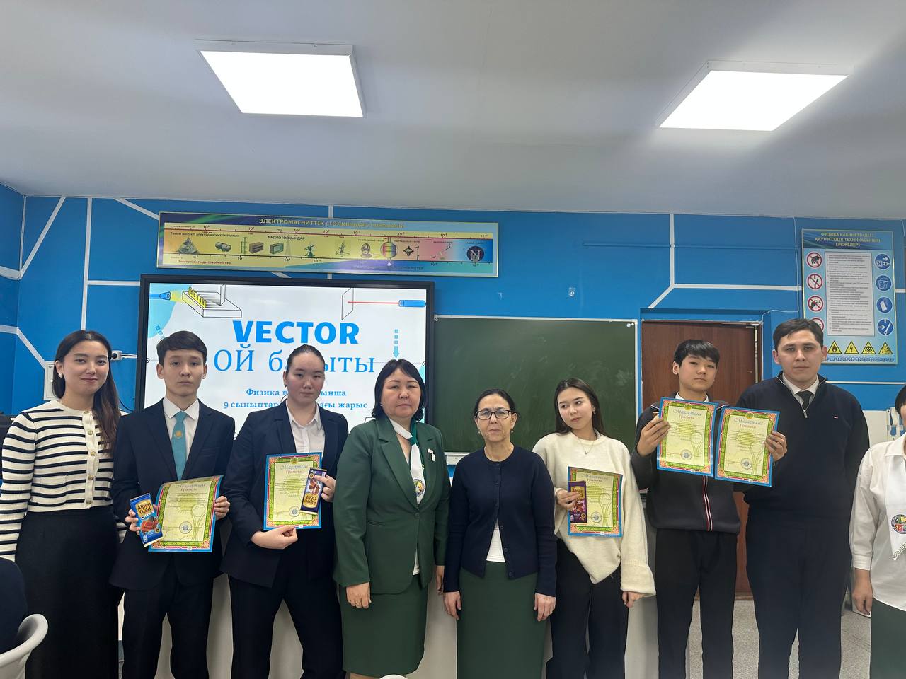 10.02.2026 күні мектебімізде 9-сынып оқушылары арасында физика пәнінен «VECTOR – ой бағыты» атты зияткерлік сайыс өткізілді.
