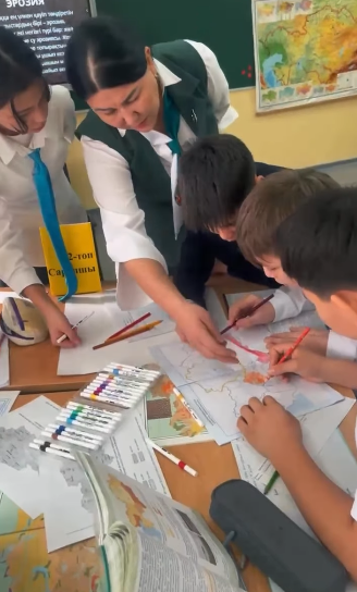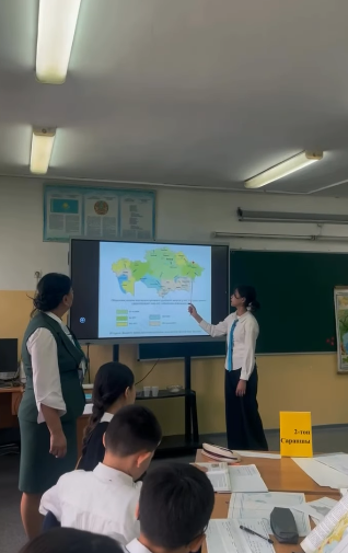 Үй тапсырмасы «Боулинг» әдісі арқылы пысықталып, Wordwall платформасы көмегімен картамен жұмыс жүргізілді. Сонымен қатар, тәжірибелік жұмыстар сәтті орындалып, оқушылардың тақырыпқа деген қызығушылығы артты.