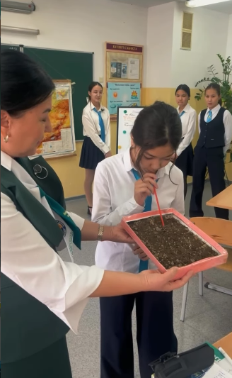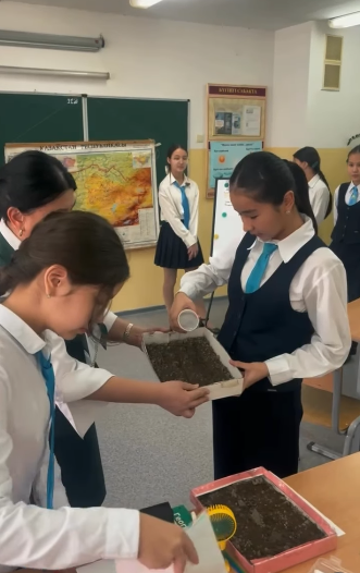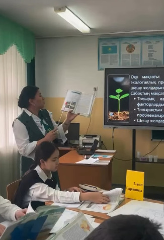 10.02.2026 күні география пәнінің мұғалімі Айжан Онгарбековна Онланбекова 7 «Б» сыныбымен «Топырақтың экологиялық проблемалары» тақырыбында ашық сабақ өткізді.