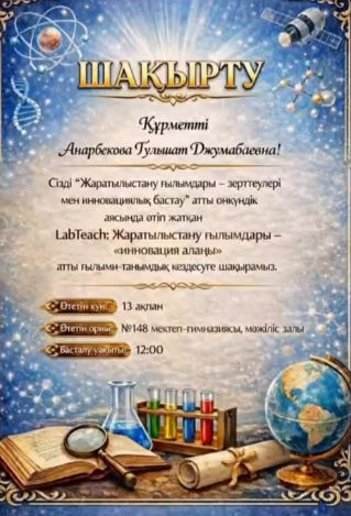 Аталған шараға Қазақ ұлттық қыздар педагогикалық университеті «Биология» кафедрасының ғылым кандидаты, қауымдастырылған профессоры, білікті ғалым Анарбекова Гульшат Джумабаевна арнайы қатысып, оқушылармен мазмұнды сұхбат құрды.