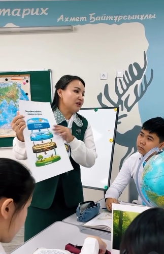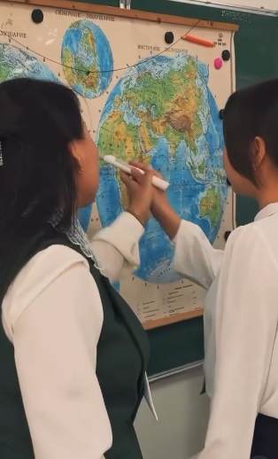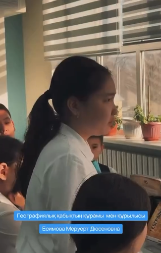 Сабақты география пәнінің мұғалімі Есимова Меруерт Дюсеновна жоғары кәсіби деңгейде ұйымдастырып, оқушылардың пәнге деген қызығушылығын арттыруға бағытталған тиімді әдіс-тәсілдерді қолданды.
