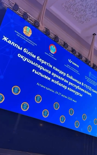 2026 жылғы 24–27 ақпан аралығында Астана қаласында Қазақстан Республикасы Білім және ғылым министрлігінің «Дарын» республикалық ғылыми-практикалық орталығы ұйымдастырған 9–11 сынып оқушыларына арналған республикалық ғылыми жобалар конкурсының жаратылыстану-математикалық бағытындағы қорытынды кезеңі өтті.