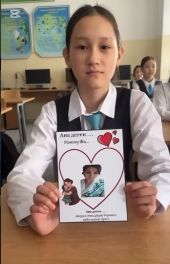Оқушылар өз аналарына арнап ашық хаттар дайындап, жүрекжарды тілектерін жазды. Сонымен қатар олар өз қолдарымен суреттер салып, шығармашылық жұмыстарын ұсынды. Әрбір жұмыс оқушылардың аналарына деген құрметі мен алғысының, мейірімі мен сүйіспеншілігінің айқын көрінісі болды.