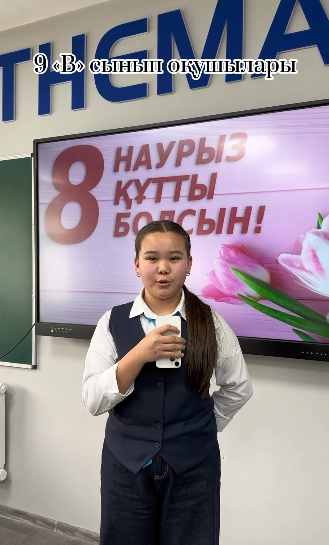 8 Наурыз – Әйелдер күні – нәзік жанды жандарға арналған мерейлі мереке. 9 «В» сынып оқушылары өздерінің аналарына, әжелеріне, әпке-қарындастарына және барлық әйелдерге жүректен шыққан құттықтауларын жолдайды.