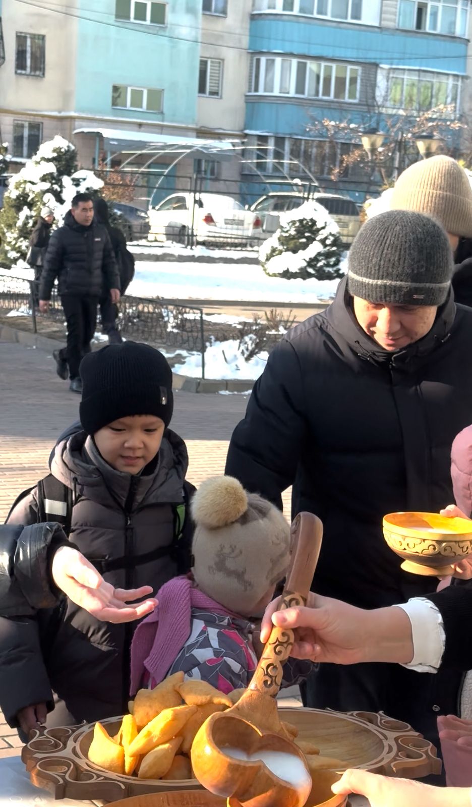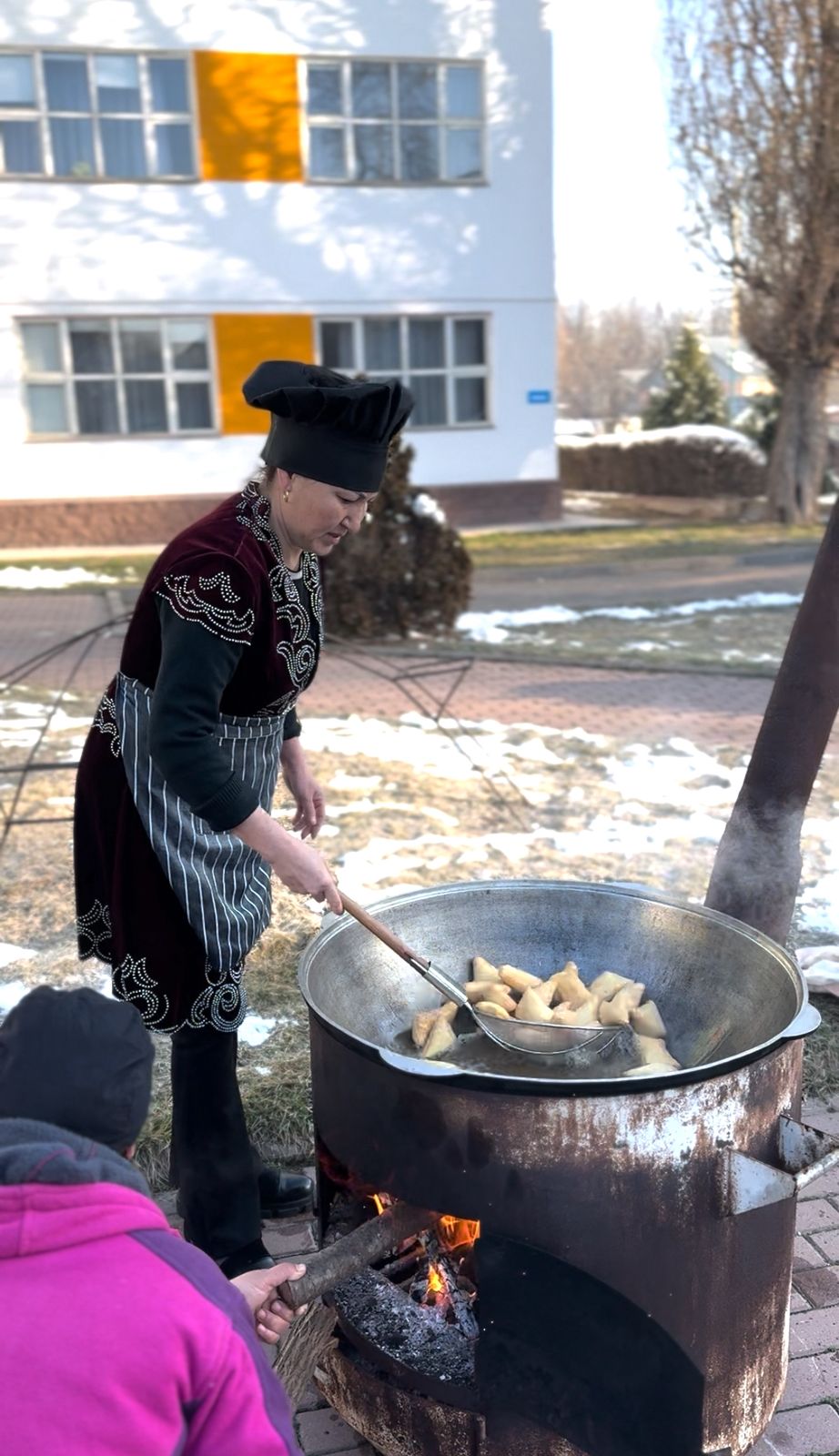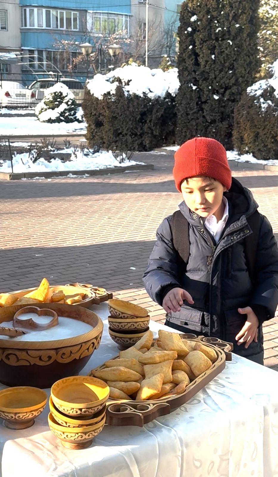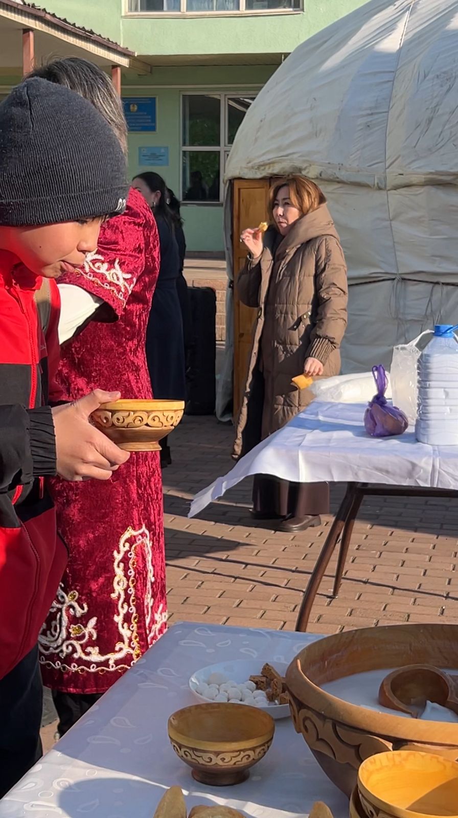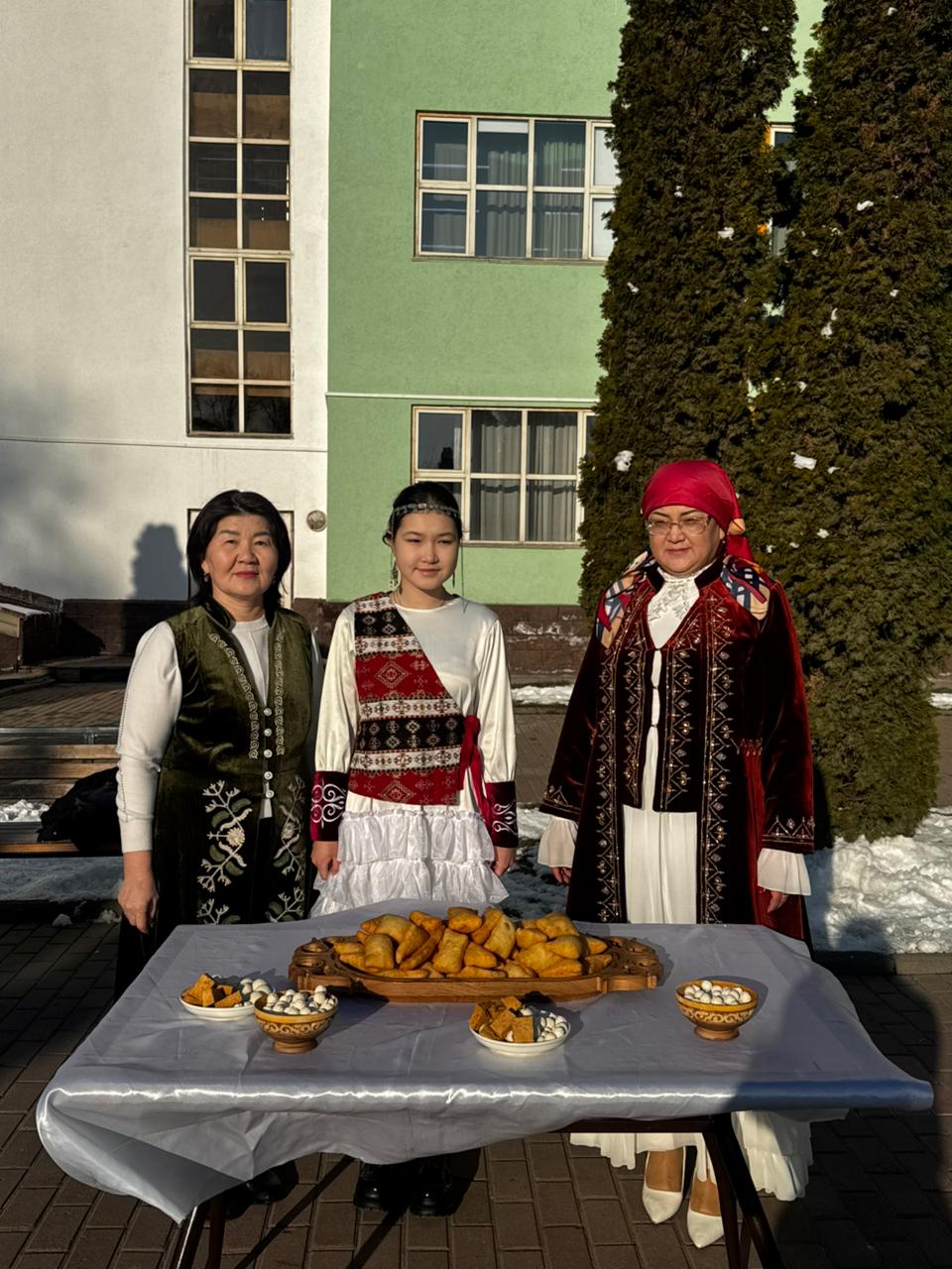 Мектеп ауласында ұлттық салт-дәстүрге сай қазан көтеріліп, бауырсақ пісіріліп, самауырдан шай дайындалды. Киіз үй тігіліп, ұлттық нақыштағы дастархан жайылып, мерекелік атмосфера қалыптасты.