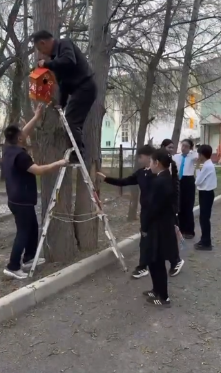1 сәуір – Құстар күніне орай №148 мектеп-гимназиясының 5 «В» сынып оқушылары қолдан құстарға арналған ұяшықтар жасап, оларды сыныптарының маңына іліп қойды.