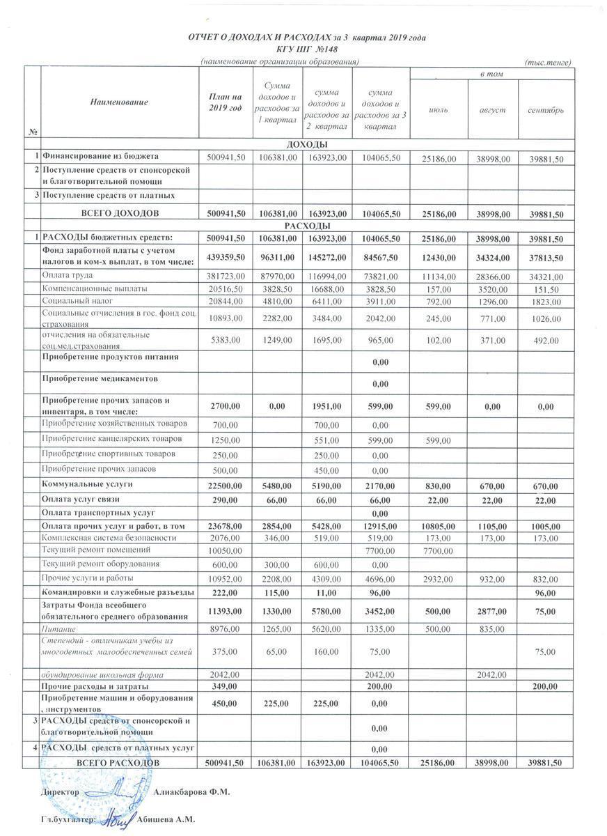 07 қазан 2019 0 1 2 3 4 5 ОТЧЕТ О ДОХОДАХ И РАСХОДАХ за 3 квартал 2019 года Осы беттің QR-коды:QR-код этой страницы:
