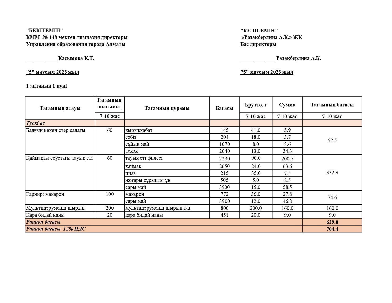 03 маусым 2023 0 1 2 3 4 5 №148 мектеп-гимназиясы мектеп жанындағы лагерьдің бір мезгілді тегін ыстық тамақпен қамту туралы ас мәзірі. Осы беттің QR-коды:QR-код этой страницы: