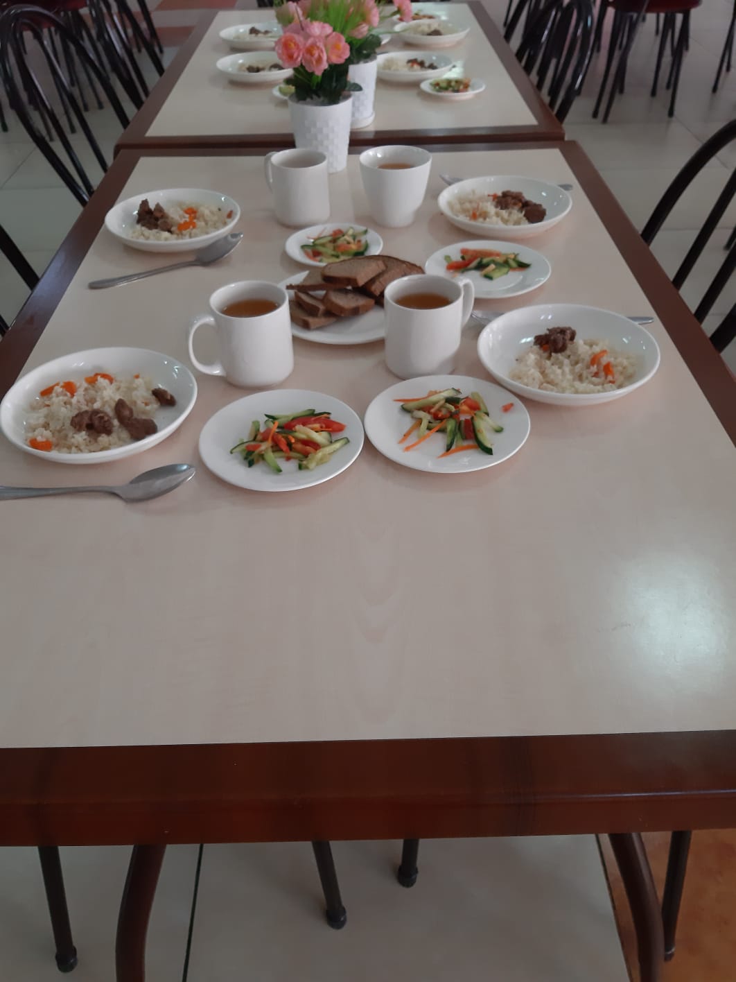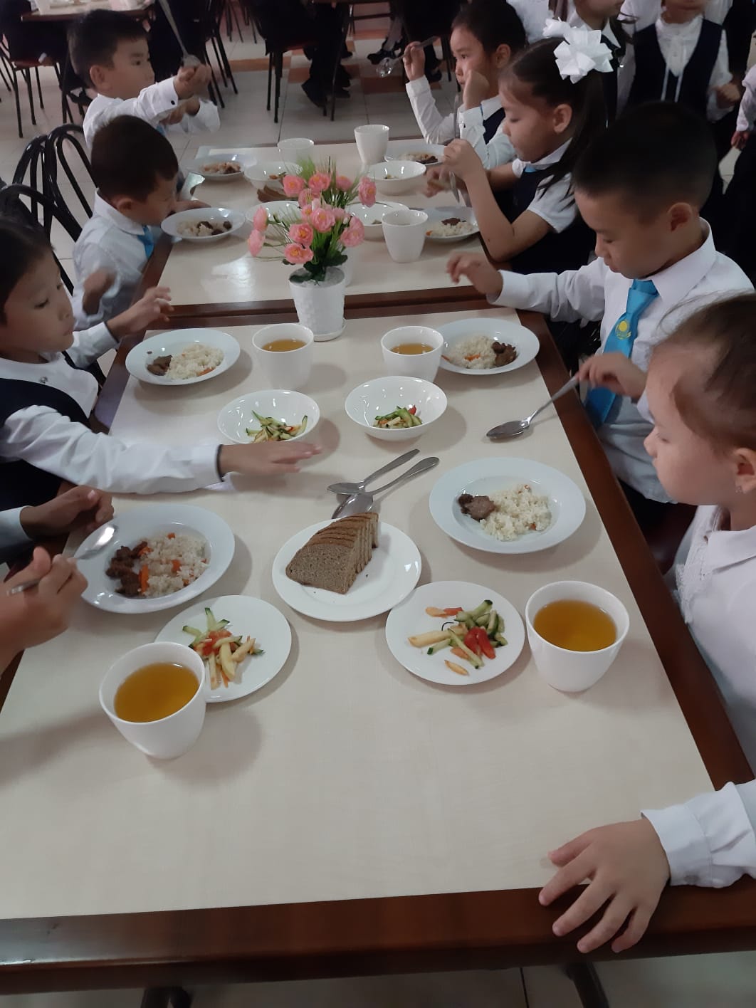 Мектеп асханасынан оқушыларға берілетін тегін ыстық тамақтанудан көрініс