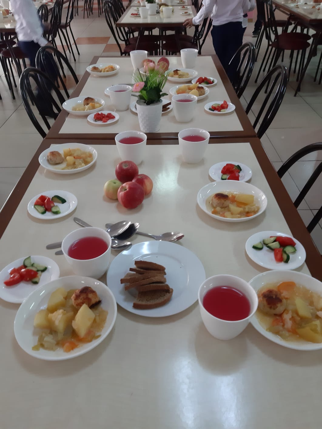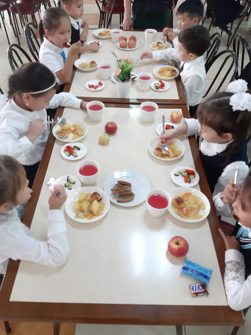 Мектеп асханасынан оқушыларға берілетін тегін ыстық тамақтанудан көрініс