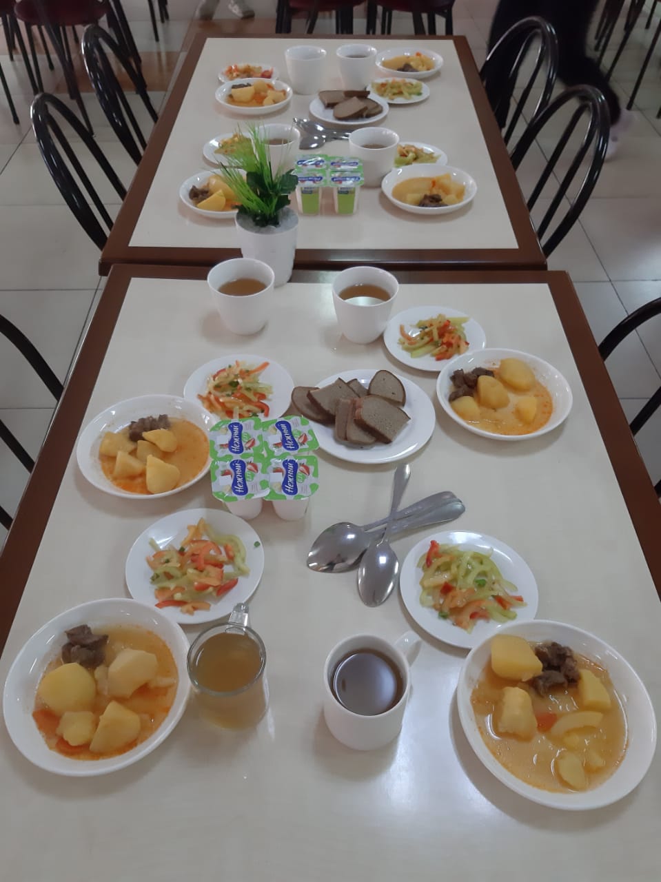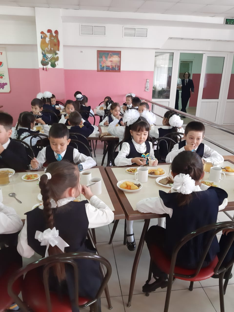 Мектеп асханасынан оқушыларға берілетін тегін ыстық тамақтанудан көрініс