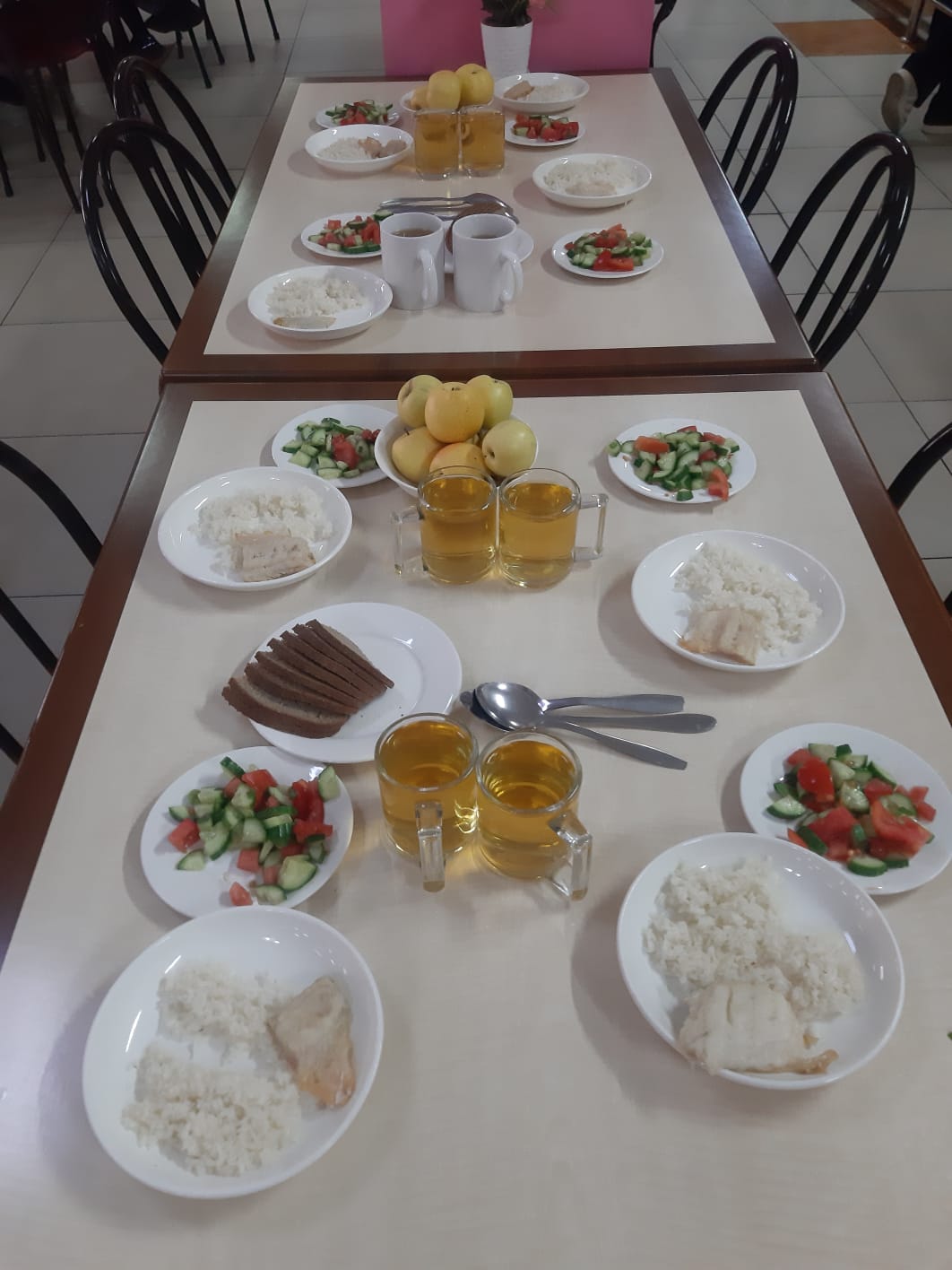 Мектеп асханасынан оқушыларға берілетін тегін ыстық тамақтанудан көрініс