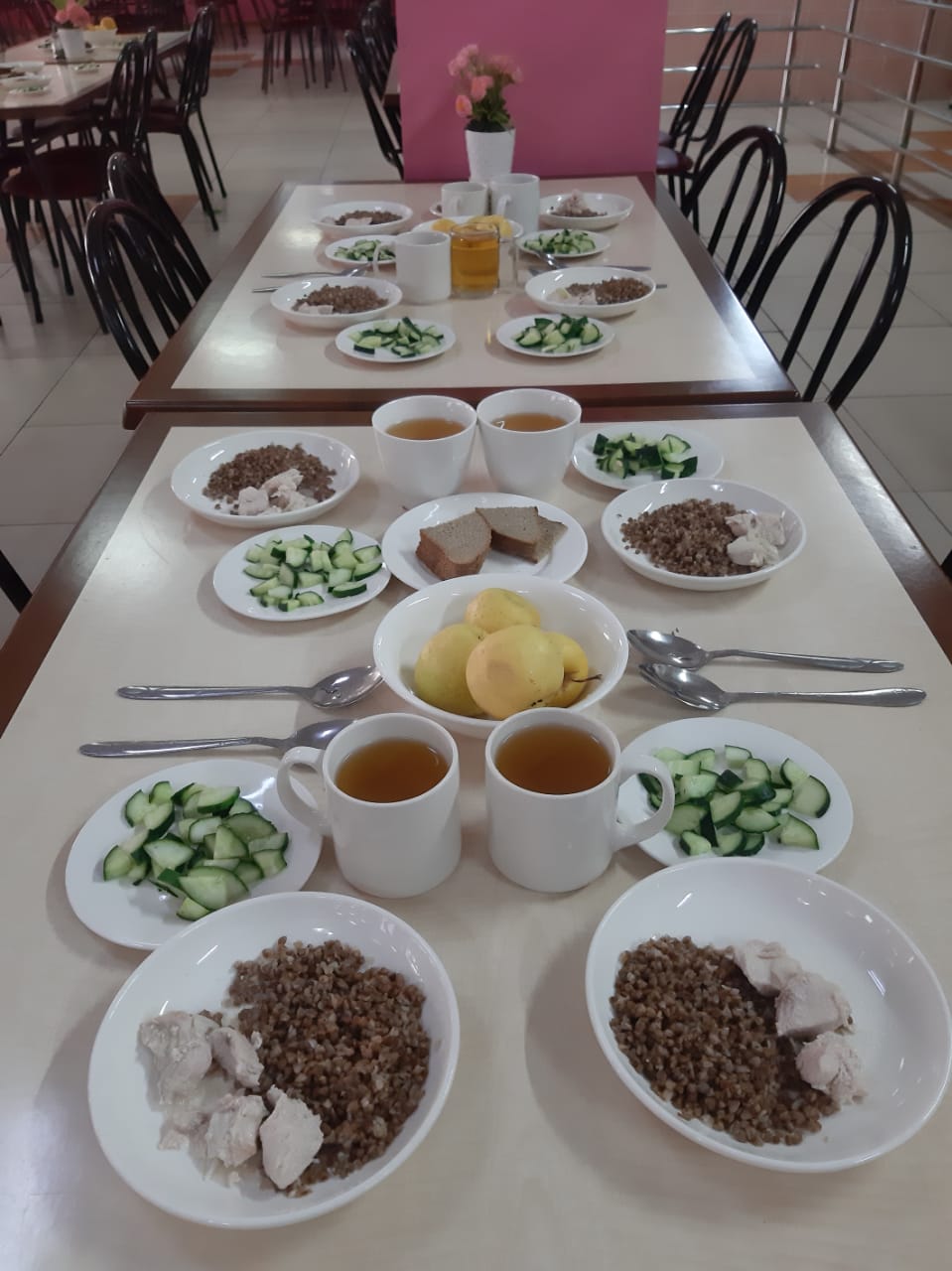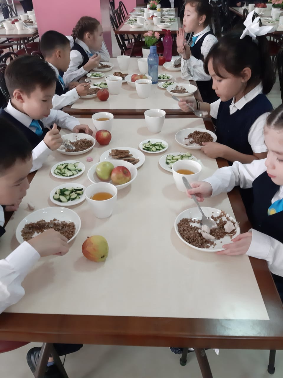 Мектеп асханасынан оқушыларға берілетін тегін ыстық тамақтанудан көрініс